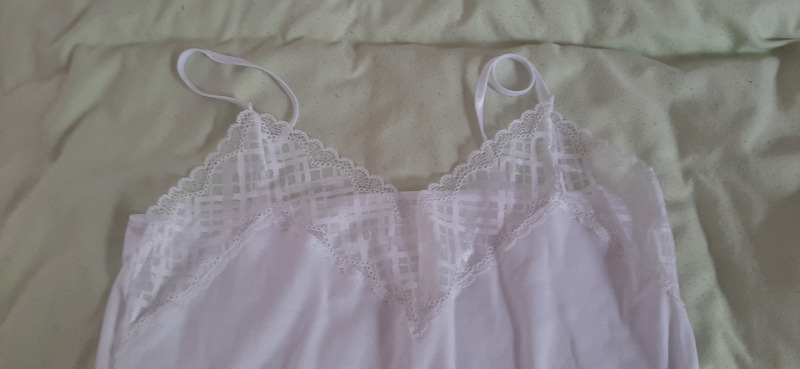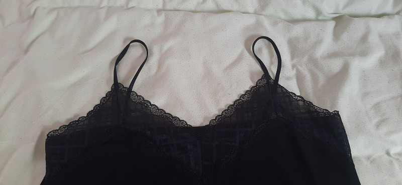 Bardzo fajna koszulka z niezłej bawełny. Model bez dużego dekoltu,który zakrywa miękka koronka..